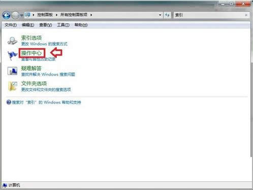 1、開始→雙擊打開控制面板,在右上角的搜索框中鍵入:操作中心。