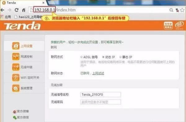 現在大部分寬帶都是用光貓進屋的,安裝人員會設置寬帶線。安裝路由器時,寬帶線必須連接到路由器WAN口處。LAN口可以用網線連接到電腦或其他網絡設備上,也可以空著。 連接后,連接電源,接口對應的燈會經常亮或閃,說明連接正常。 下一步是設置登錄路由器。 如果LAN口接入電腦,可在電腦瀏覽器上操作;如果沒有電腦,可以用手機上的瀏覽器操作。當網線插入WAN口并通電后,手機就可以搜索并連接路由器的WIFI找到并連接相應的信號WIFI你可以繼續下一步。 輸入瀏覽器地址欄192.168.1.1或192.168.0.1(具體地址見路由器背面,標有地址)返回車輛進入管理界面。