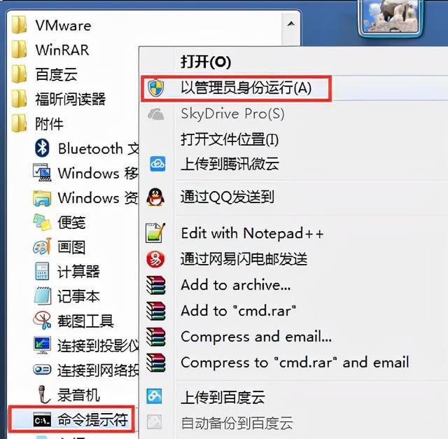 或者是: 1.單擊開始-所有程序-附件-命令提示符單擊命令提示符上的鼠標右鍵 作為管理員運行;