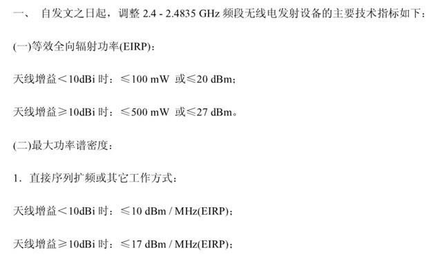 ▲ 對(duì) 2.4GHz 無(wú)線設(shè)備發(fā)射功率限制的部分