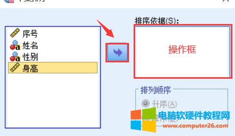 圖三:個案排序 3、在彈出的窗口中選中身高變量;