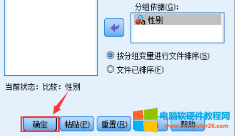 圖十四:拆分性別 3、點擊右側的“比較組”選項,然后通過下方箭頭按鈕將性別變量添加至分組框中;