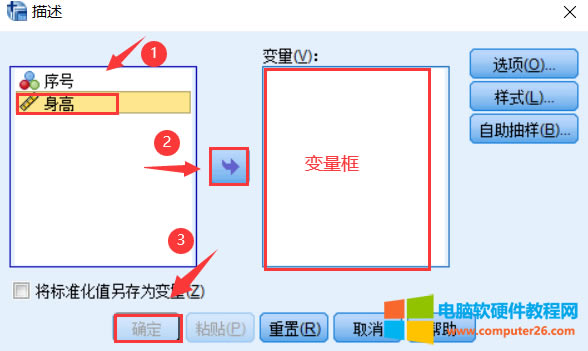 圖四:身高變量 4、點擊中間的按鈕將其添加至操作框;