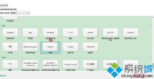 3、選擇English 英語-打開。語言分組依據(jù)默認(rèn)是根據(jù)語言名稱分類,英語的拼音開頭是Y,所有位于Y組語言,可自行調(diào)整左上角的語言分組依據(jù);