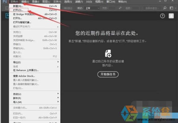 1、首先我們打開PS軟件,然后點擊“文件”,在菜單中選擇“打開”。