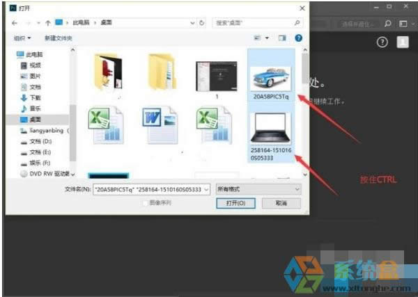 2、這時會彈出一個文件夾選擇窗口,打開我們需要的圖片,當我們按住ctrl就可以一次性選擇兩張圖片打開。