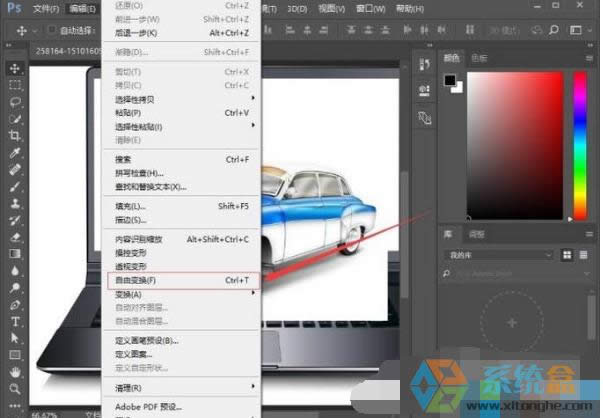 6、拖動完成后點擊最上方一排的編輯欄,選擇“自由變換”,或者使用快捷鍵Ctrl+T。