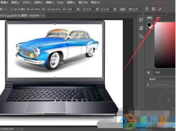 8、最后將圖片拖拽到合適的位置,點擊回車鍵即可,或點擊圖示箭頭處的√保存變換即可。
